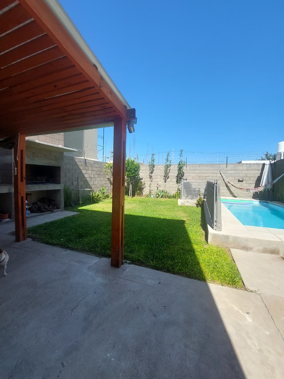 - Exterior: Patio parquizado, pileta y sector de asador.